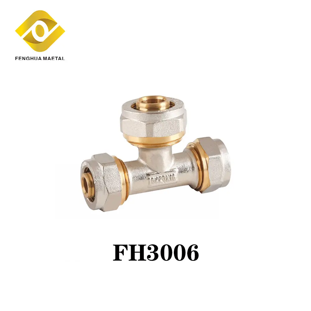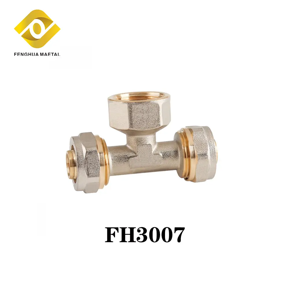 PEX compression fittings are commonly used pipe fittings in piping and heating systems. The design range of compression fittings is from 16 to 32, developed for maximum strength and safety in hybrid or heating devices. The compression fittings are made of brass and meet the UNE-EN1057 standards for copper pipes. Because the brass material has good corrosion resistance, it can be used for a long time without rust or corrosion, extending the life of the joint and reducing the replacement cost. Unlike other accessories, it adopts a collar-style design, allowing easy connection and disassembly of pipes without the use of specialized tools or skills. In addition to the corresponding economic savings, it promotes the speed and comfort of the facility.